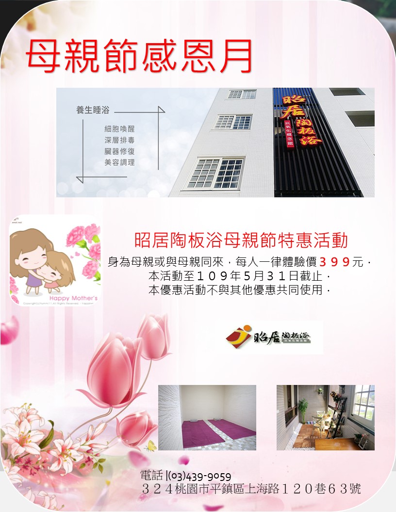昭居陶板浴提供整個5月的母親節特惠活動.