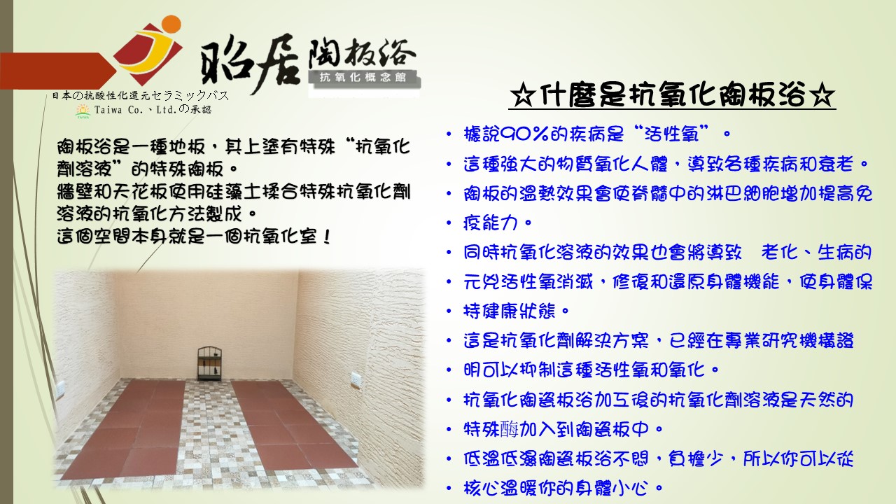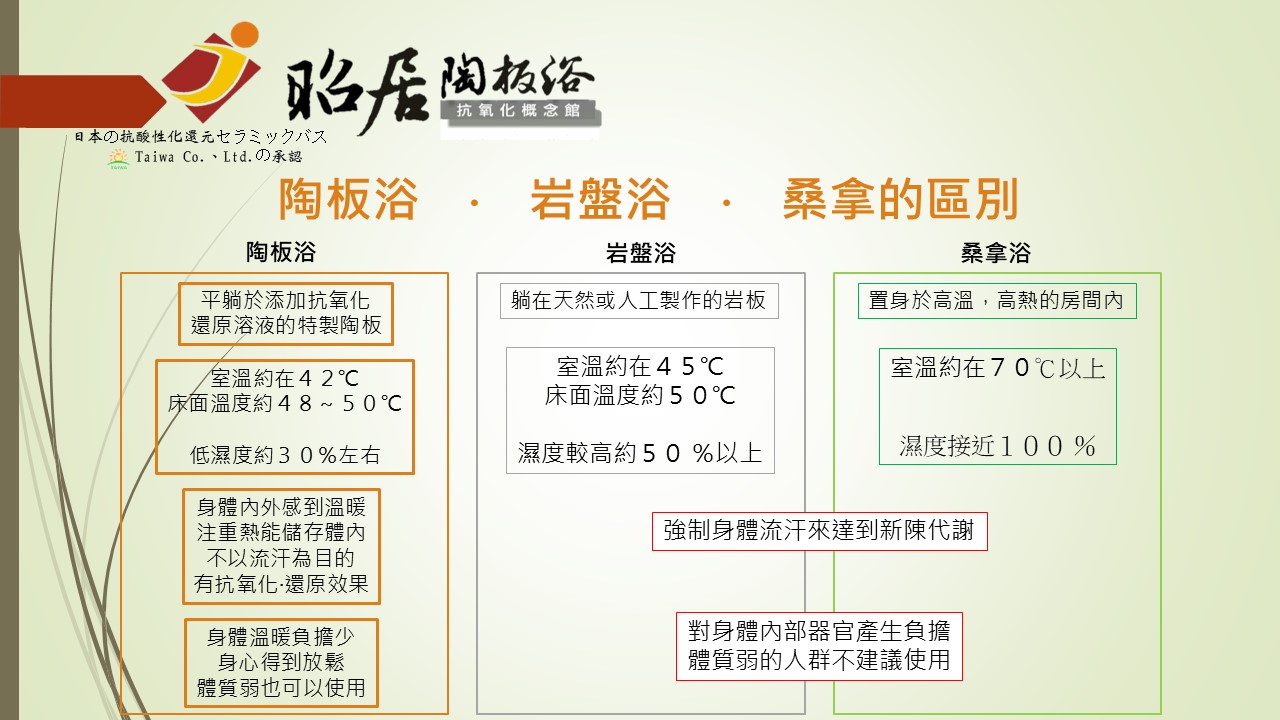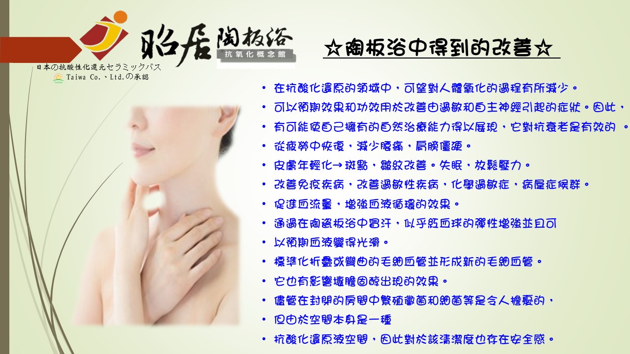 陶板浴的養生保健方式採用日本抗酸化還原技術,
